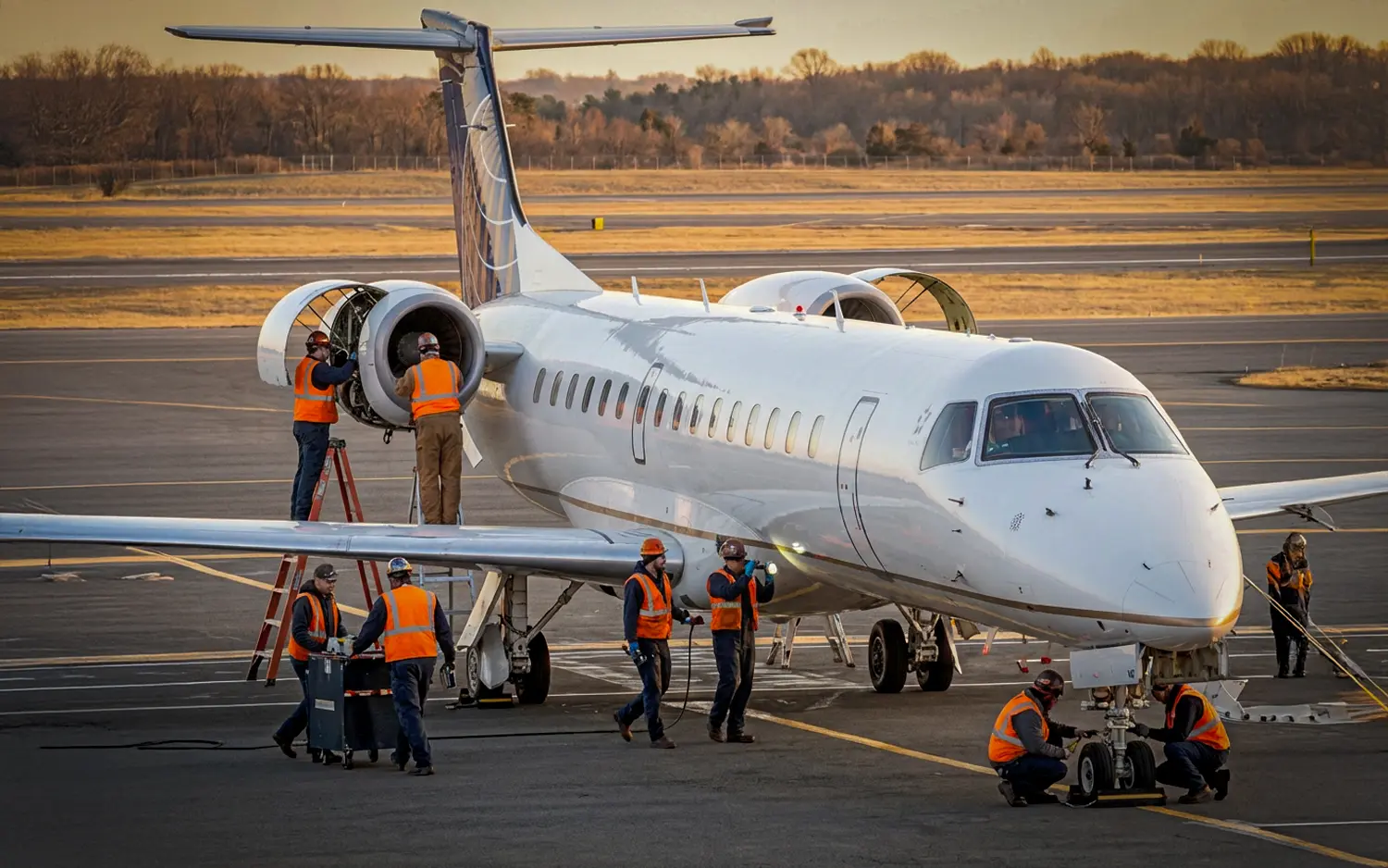 A service provided by aviation maintenance professionals to inspect, repair, and maintain aircraft components , engines, avionics, and other systems.